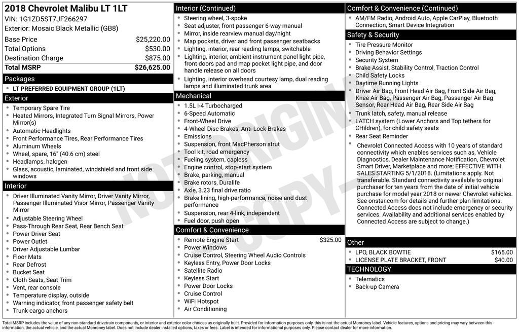 - Vehicle Name: Chevrolet Malibu
