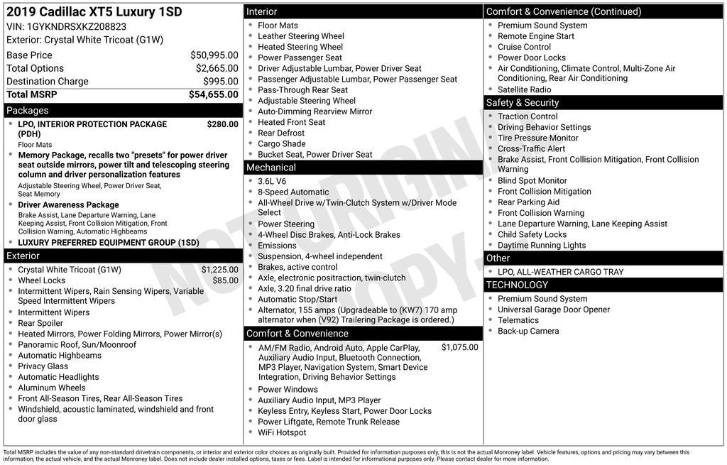 Come in or contact us to test drive this 2019 Cadillac XT5 Luxury!