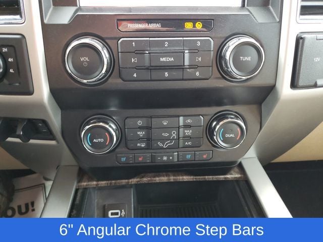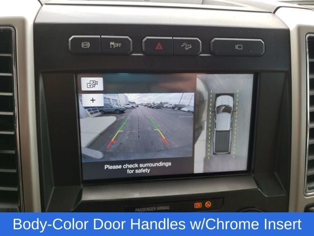 The exterior of this F-350 Lariat is enhanced with the Chrome Package, adding a touch of sophistication with chrome accents throughout. The 18-inch chrome wheels and angular step bars give it a bold, commanding presence. The twin-panel power moonroof provides an open-air experience, while the rear backup camera and trailer tow camera system make maneuvering a breeze.