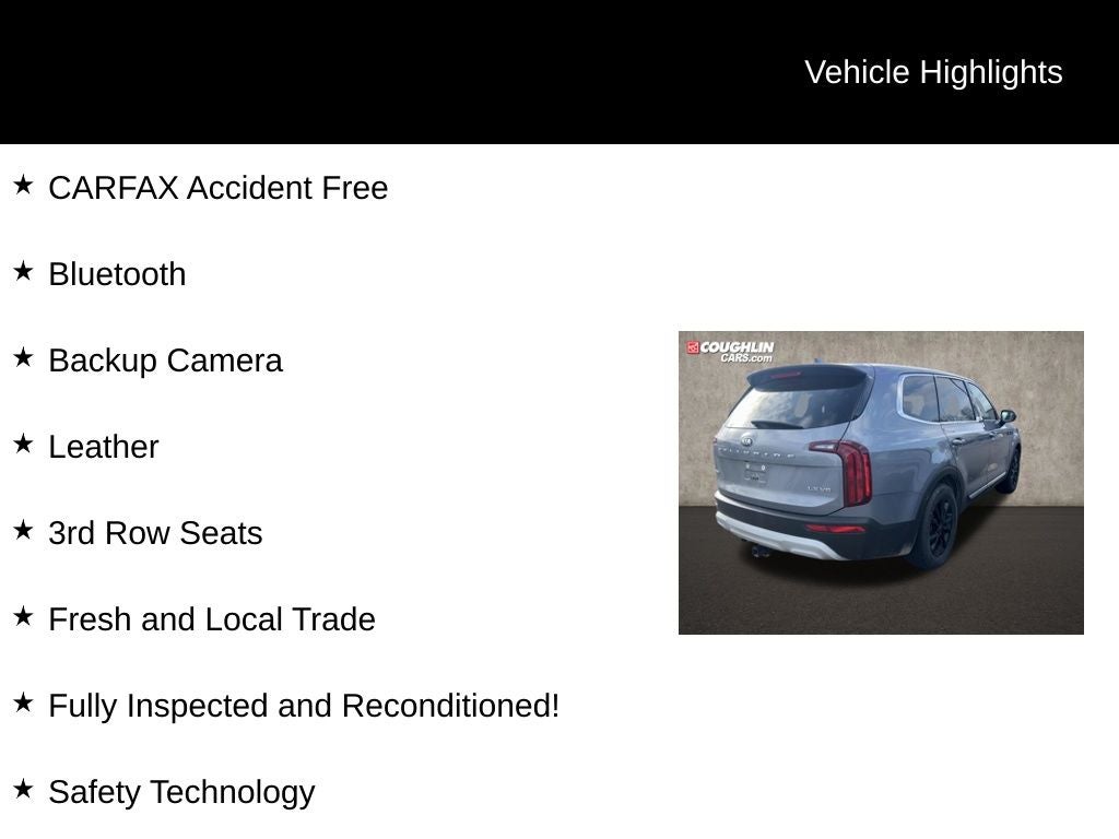 Don't miss your chance to experience the exceptional value and capabilities of this 2021 Kia Telluride LX. Visit Coughlin Kia of Lewis Center today and let us show you why this SUV is the perfect choice for your next adventure.