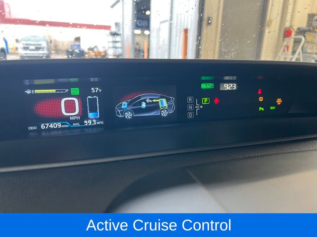 Boasting a heads-up display, remote keyless entry, traction control, and ABS brakes, this Prius Prime is equipped with a wealth of advanced safety and convenience features. The active cruise control and blind spot monitoring system further enhance the driving experience, ensuring a confident and secure journey.