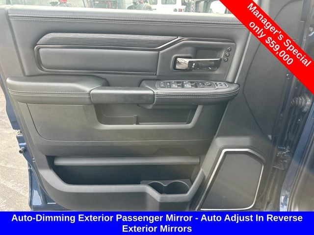 12 Touchscreen Display, 17 Speaker harman/kardon Premium Sound, 220 Amp Alternator, 2nd Row In Floor Storage Bins, 4G LTE Wi-Fi Hot Spot, 4x4 Badge, Alexa Built-In, Aluminum Litho Instrument Panel Bezels w/Blk Trim, Apple CarPlay, Auto Adjust In Reverse Exterior Mirrors, Auto Dim Exterior Mirror, Auto High Beam Headlamp Control, Auto Power-Folding Mirrors, Auto-Dimming Exterior Passenger Mirror, Bed Utility Group, Bi-Function LED Projector Headlamps, Black Exterior Mirrors, Black Rotary Shifter w/Silver Stripe, Body Color Door Handles, Connected Travel & Traffic Services, Connectivity - US/Canada, Conventional Differential Front Axle, Disassociated Touchscreen Display, Electric Shift-On-The-Fly Transfer Case, Exterior Mirrors Courtesy Lamps, Exterior Mirrors w/Heating Element, Exterior Mirrors w/Memory, Exterior Mirrors w/Supplemental Signals, For Details, Visit DriveUconnect.com, For More Info, Call 800-643-2112, Forward & Reverse Utility Lights, Front Door Accent Lighting, Global Telematics Box Module (TBM), Google Android Auto, GPS Antenna Input, GPS Navigation, HD Radio, Instrument Cluster Theme 2 - Rebel, Integrated Voice Command w/Bluetooth®, Leather Wrapped Grab Handle, LED Bed Lighting, LED Dome Lamp w/On/Off Switch, LED Interior Lighting, Level 2 Equipment Group, Limited Slip Rear Differential w/Electronic Lock, Luxury Door Trim Panel (CTH), Mirror Running Lights, MOPAR Deployable Bed Step, MOPAR Front & Rear Rubber Floor Mats, MOPAR Spray In Bedliner, Off-Road Information Pages, Overhead LED Lamps, Painted Semi-Texture Film Instrument Panel Bezels, Power Adjust Mirrors, Power Adjustable Convex Aux Mirrors, Power Adjustable Pedals w/Memory, Power Heated Fold Telescopic Mirrors w/Memory, Power Telescoping Mirrors, Premium Overhead Console, Quick Order Package 2GR Rebel (DISC), Radio: Uconnect 5 Nav w/12.0 Display, Rain Sensitive Windshield Wipers, Rear Door Accent Lighting, Rear Power Sliding Window, Rear Window Defroster, Rebel Badge, Rebel Instrument Panel Badge, Rebel Suspension, Remote Proximity Keyless Entry, Security Alarm, Selectable Tire Fill Alert, SiriusXM Radio Service, SiriusXM w/360L, Sport Performance Hood, Sun Visors w/Illuminated Vanity Mirrors, Trailer Tow Pages, Universal Garage Door Opener, Wheels: 20 x 8.0 Black Diamond Cut Aluminum.
